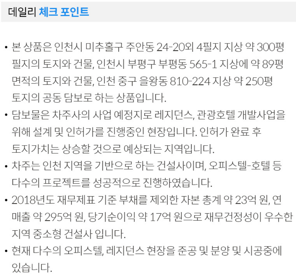 예를 들어, 담보대출의 경우 데일리 펀딩이 몇 순위로 근저당권을 잡고 있는지,