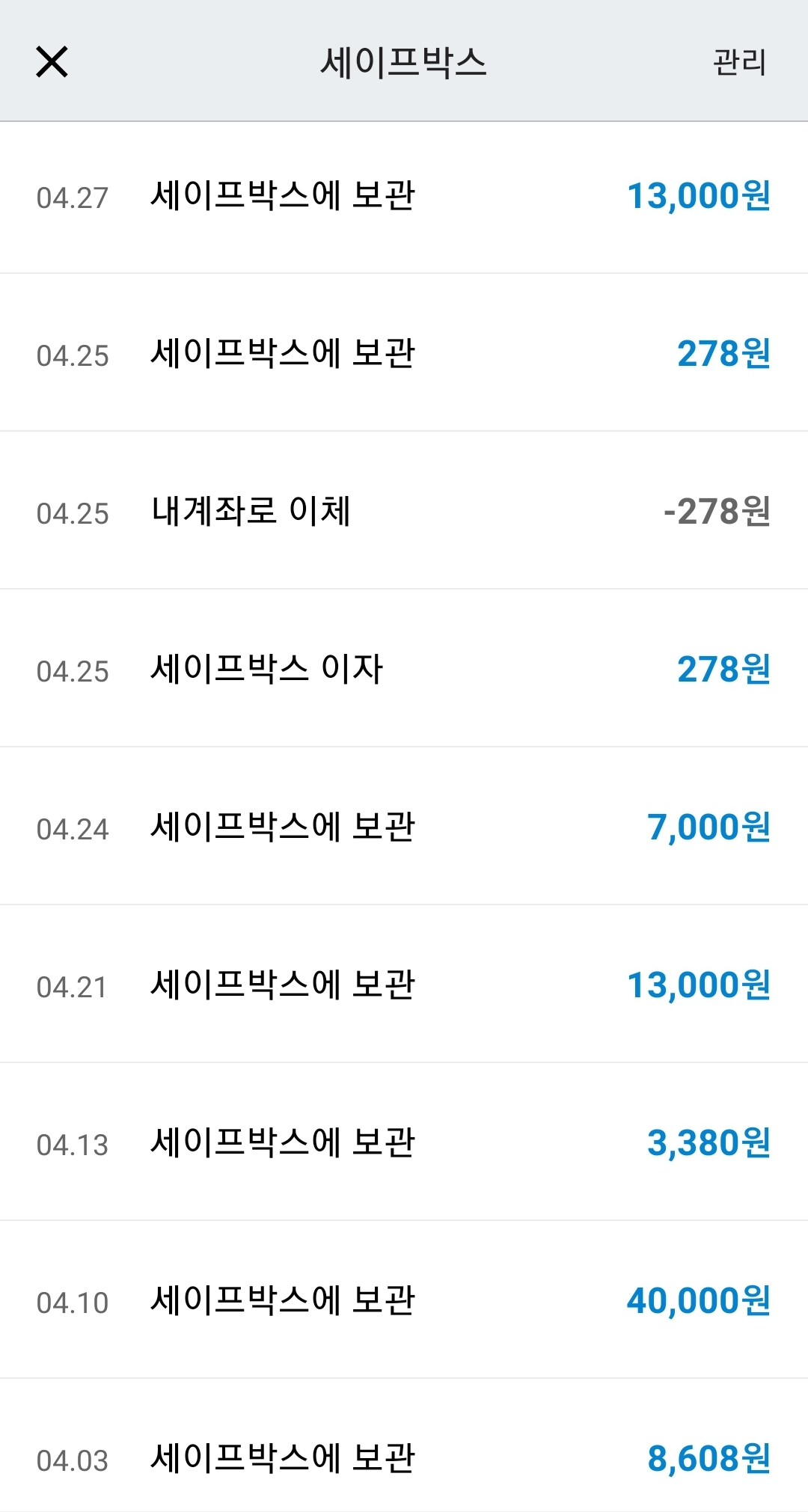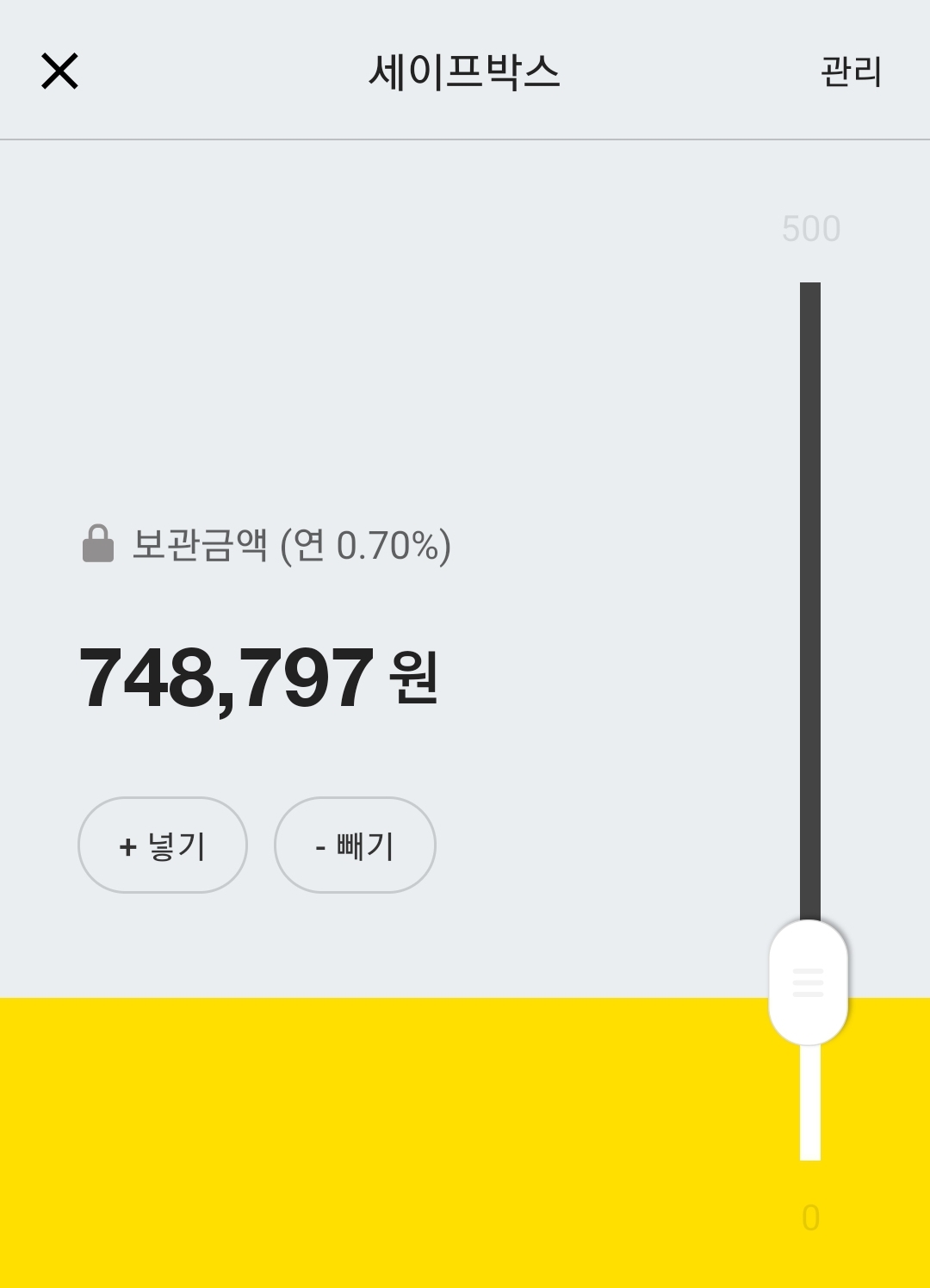 세이프 박스에 모인돈은 약 75만 원 이다.