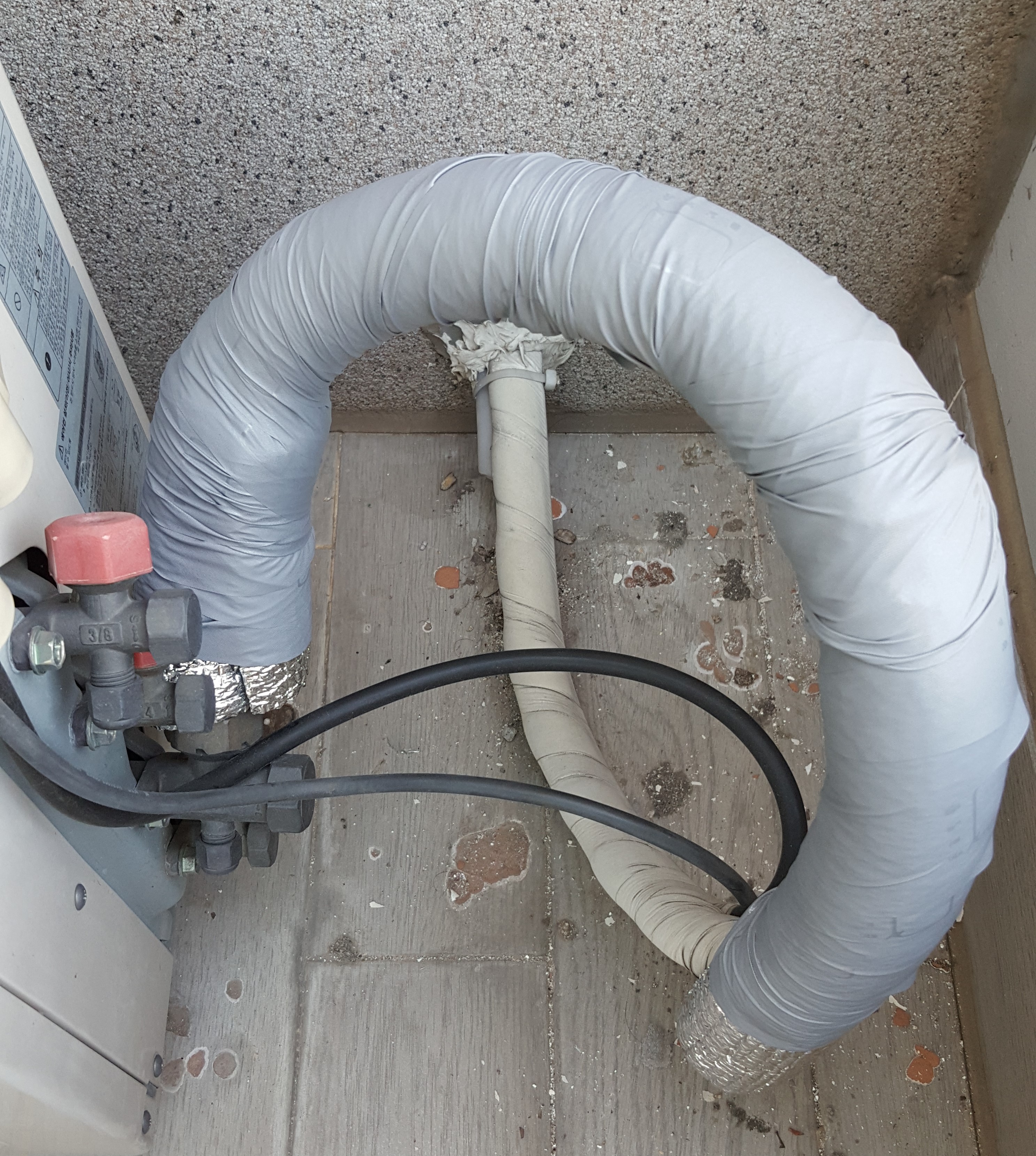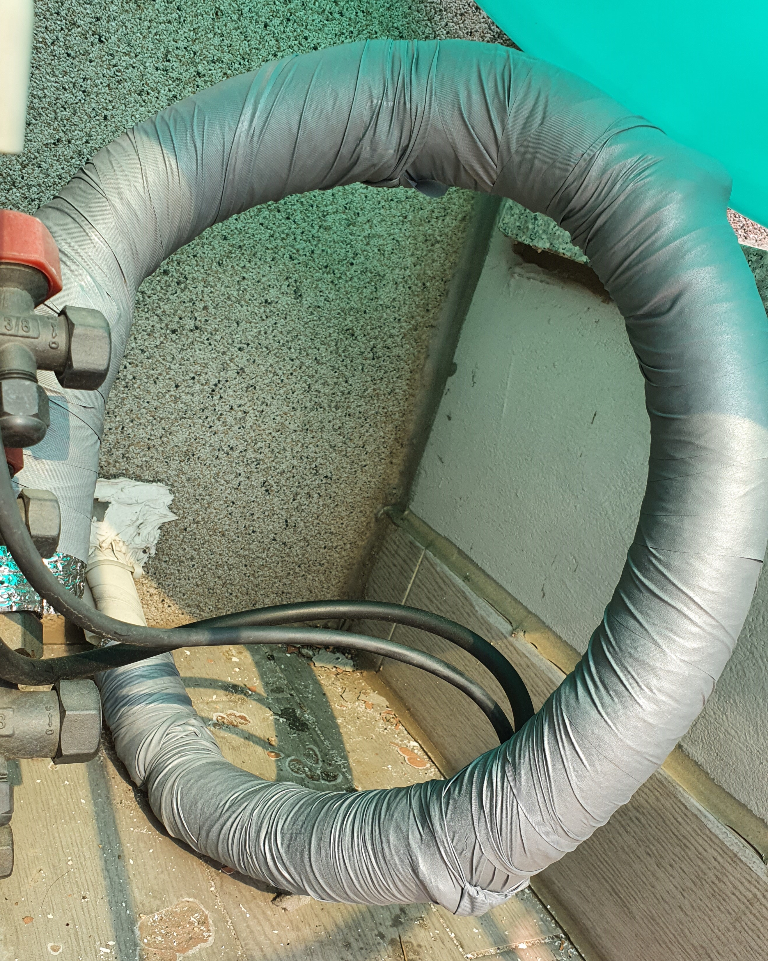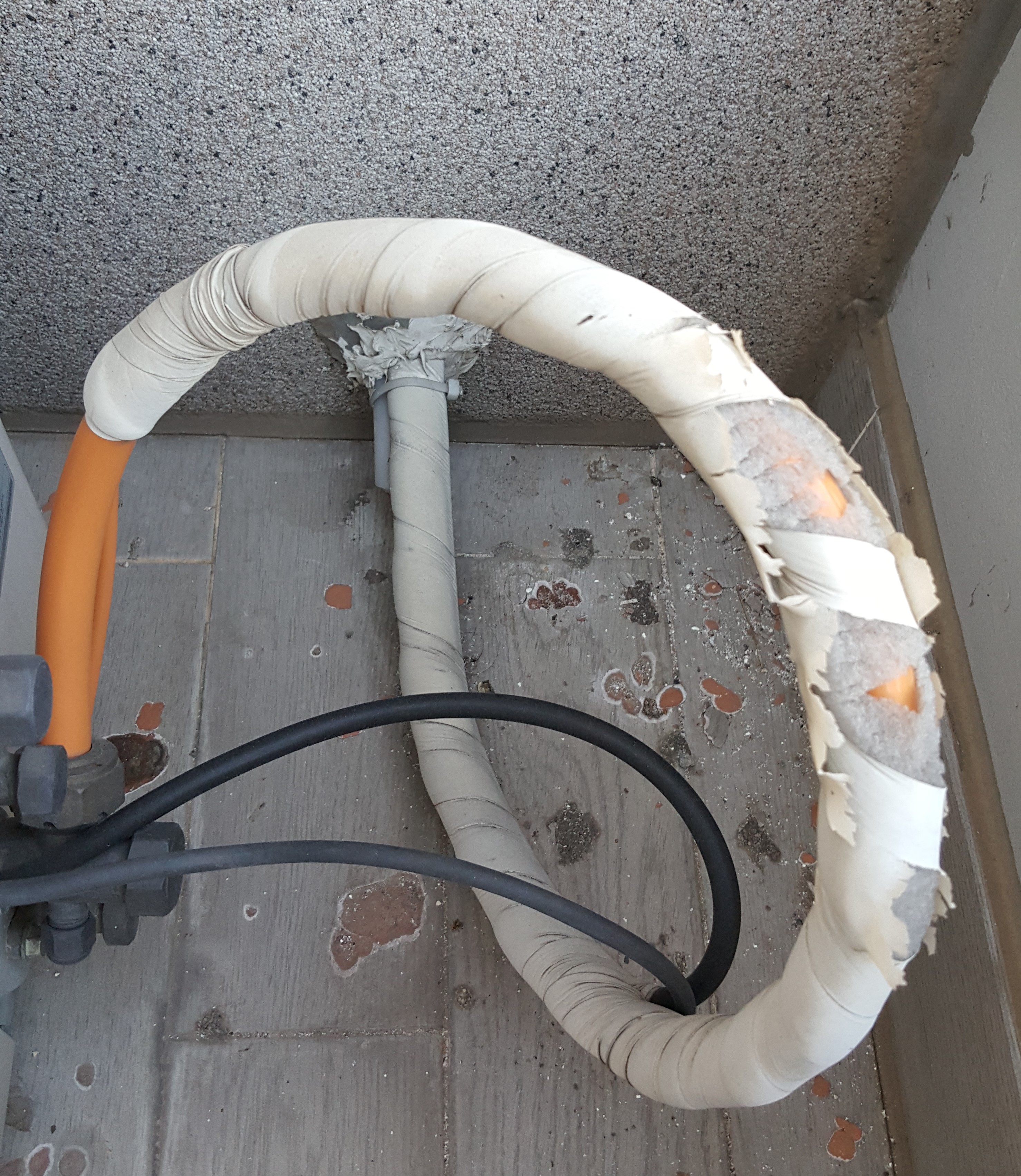 원래는 기존에 있던 냉동테이프와 보온재를 모두 벗겨낸 후