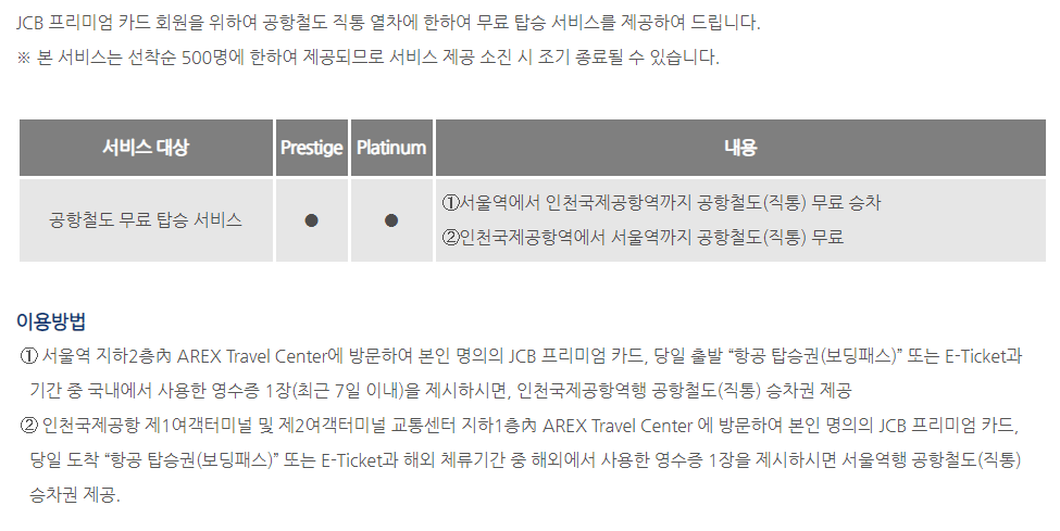 - 공항철도 직통열차 무료 서비스(1일 1회 이용 가능)