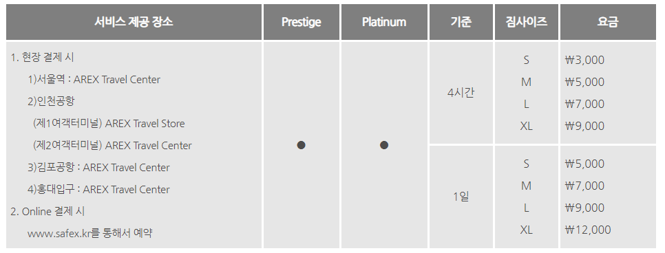 - 서울역, 인천공항 수화물 보관 서비스 할인(정상 요금의 10% 할인)