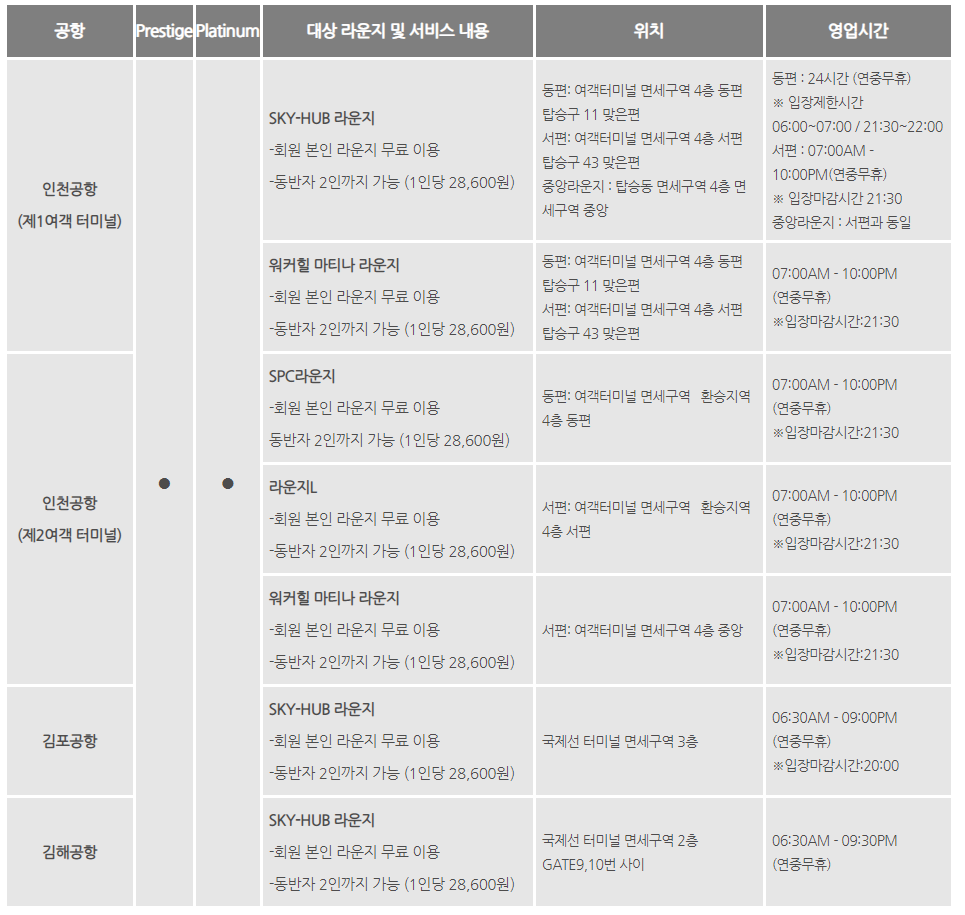 인천공항 1터미널 워커힐 마티나 라운지 (동/서편)