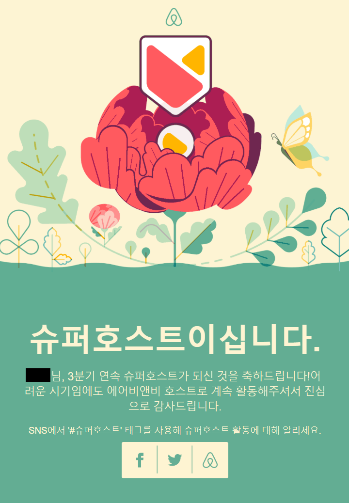 다시 슈퍼호스트로 선정되었다는 이메일을 받았다.