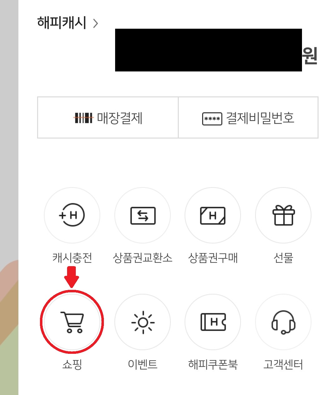 해피머니 앱에 들어가서 해피머니 충전을 해야한다.
