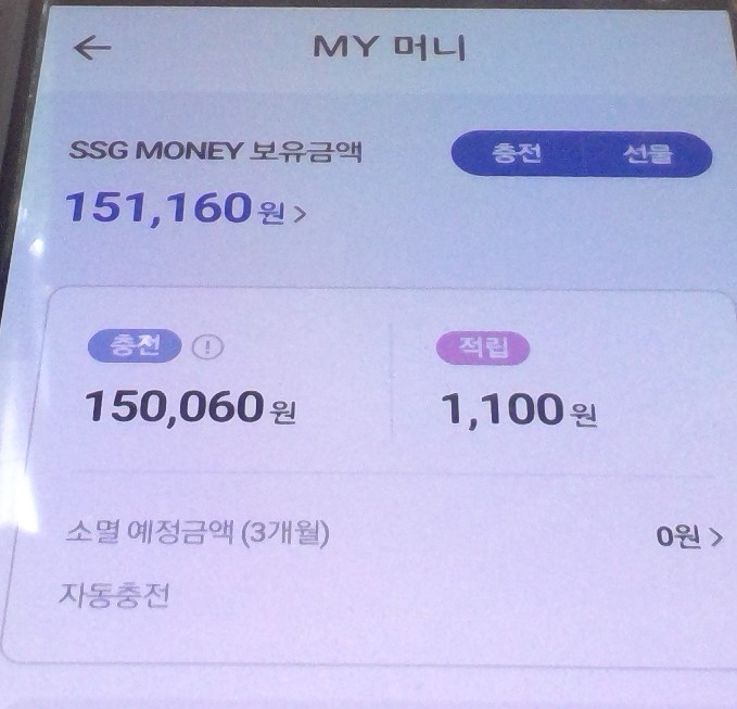쓱머니(SSG MONEY)를 충전하도록 하자