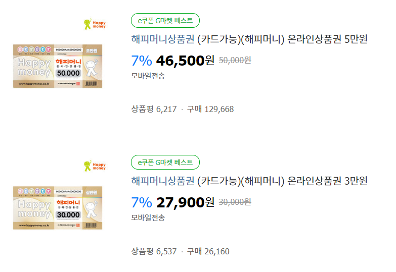 1. 인터넷 오픈마켓에서 해피머니 상품권을 할인된 가격으로 구매한다.