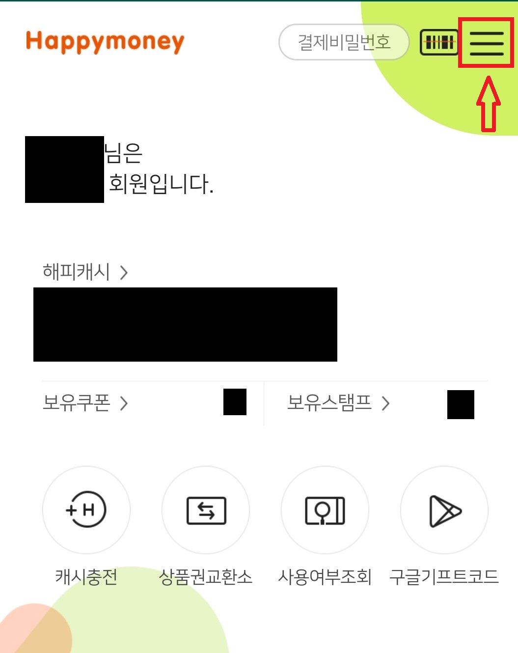 3. 해피머니가 충전되었다면