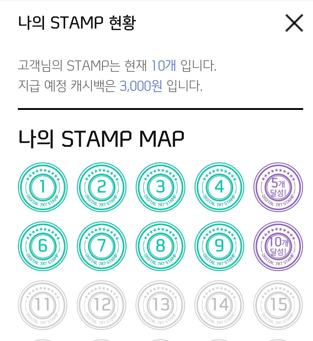 1만 원 이상 10번 결제하면 3,000원 캐시백 받을 수 있다.
