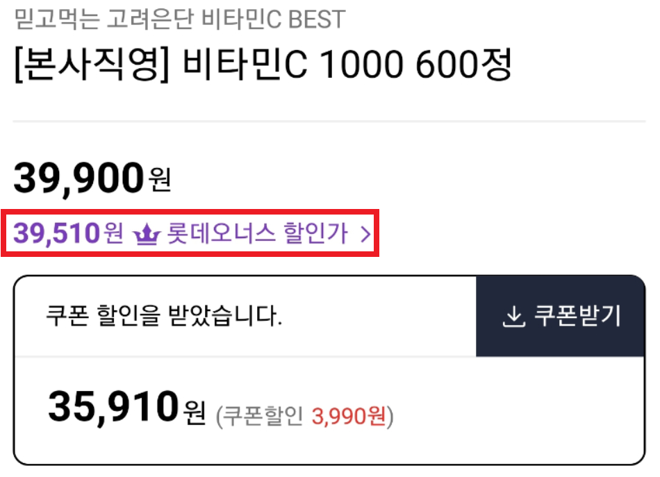 그러다가 롯데on이라는 곳에서 고려은단 비타민C 1000 600정 할인 소식을 접했다.