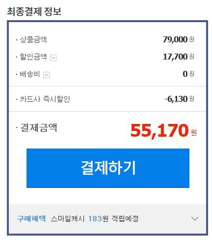 신용카드 할인까지 하면 가격은 조금 더 내려간다.
