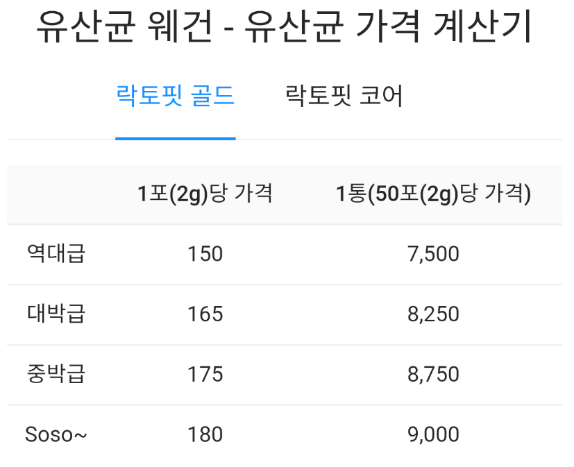 즉, 락토핏 코어 제품이 락토핏 골드 제품보다는