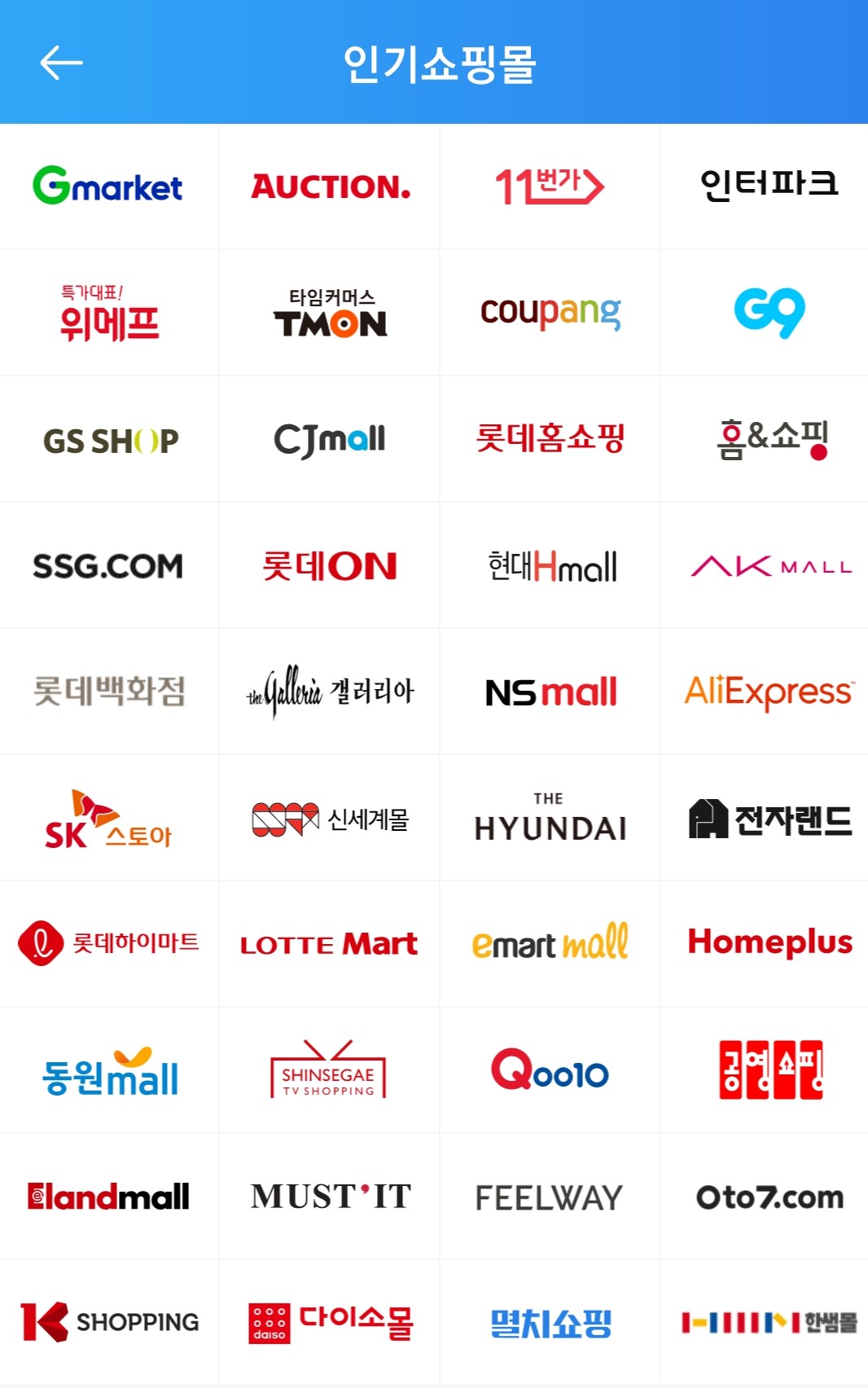 인기 쇼핑몰 목록 보는 곳이 있는데
