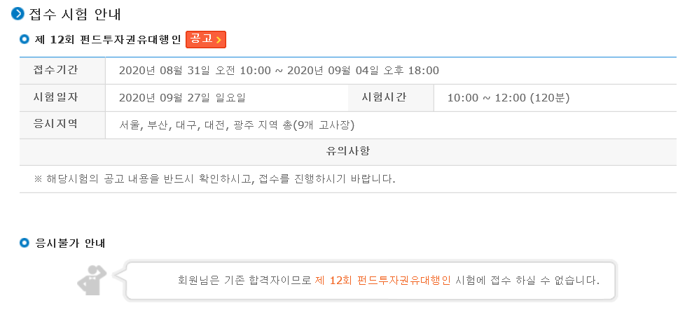 펀드투자권유대행인 자격증 시험 원서접수하려고 보니까