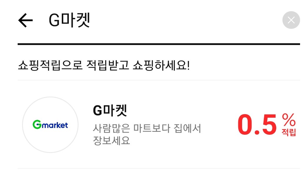오늘 기준으로 G마켓은 1% 적립된다.