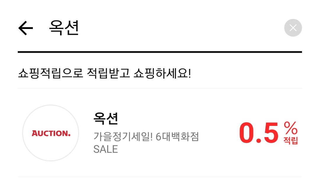 G마켓 0.5%적립이 가능하며 옥션은 제휴가 안 되어있는 것 같다.