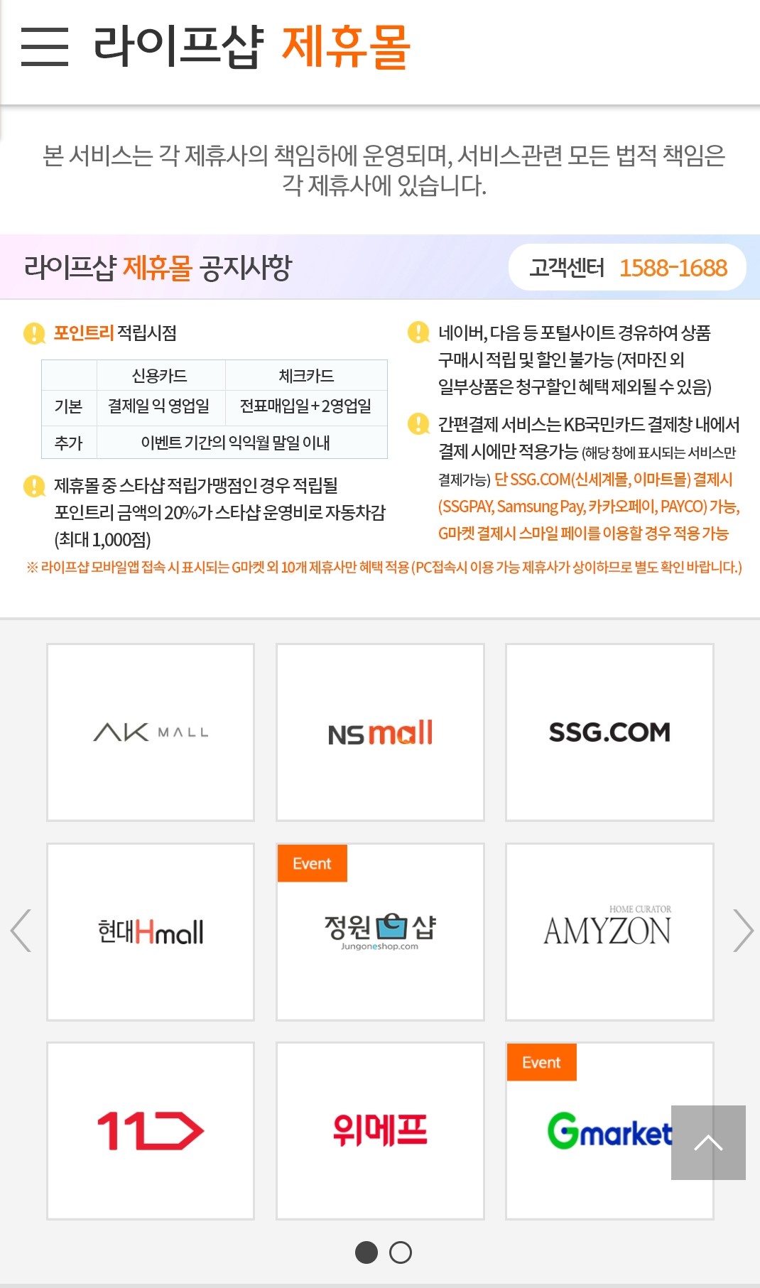 KB국민카드 앱 -> 라이프샵 -> 제휴몰로 들어가서