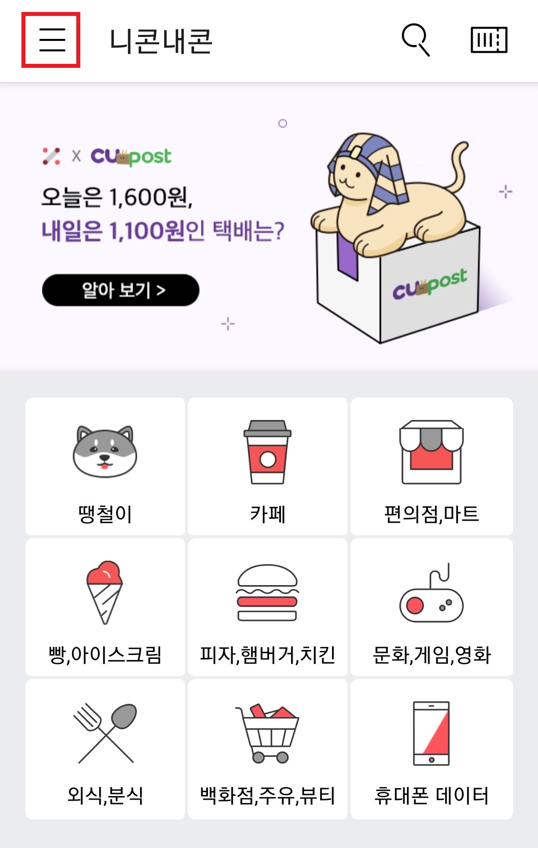 쿠폰 판매 앱인 '니콘내콘'에 접속한다.