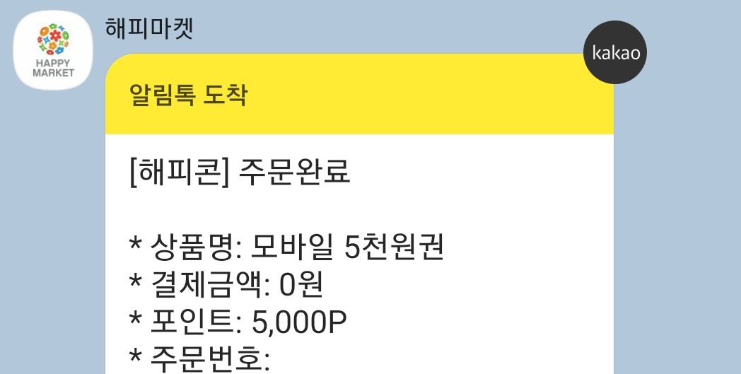 주문 완료 메시지가 카톡으로 전송되고,