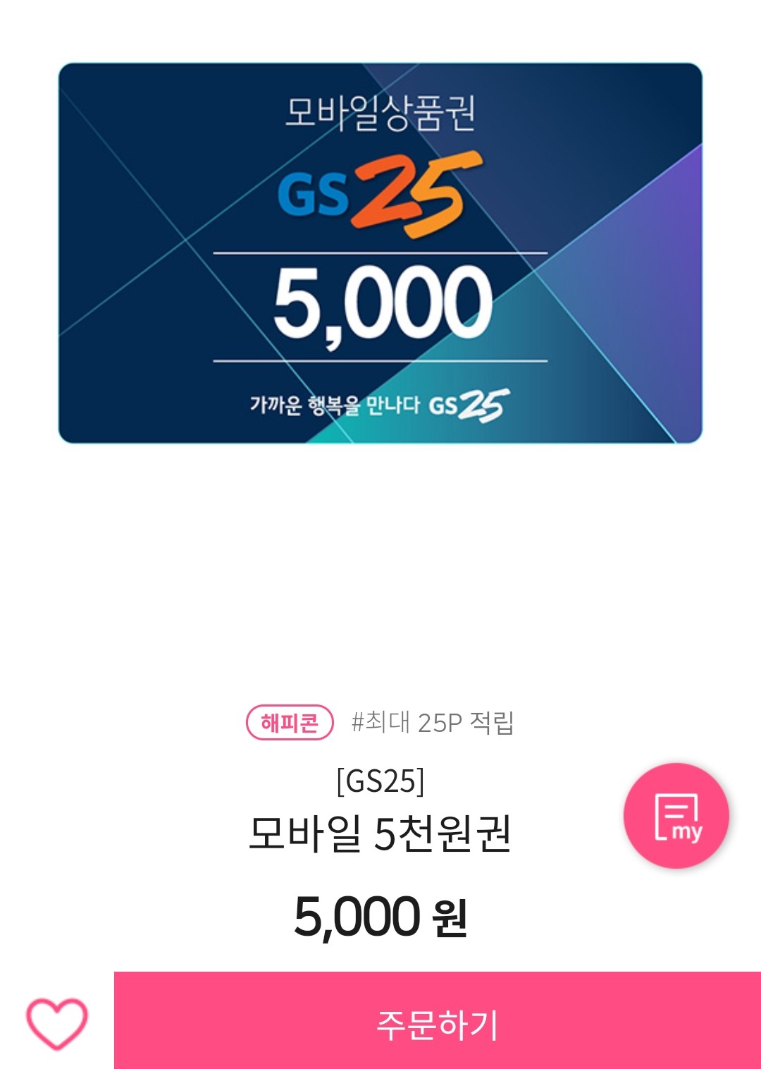 편의점 모바일 금액권 5천 원권을 해피포인트로 구매한다.