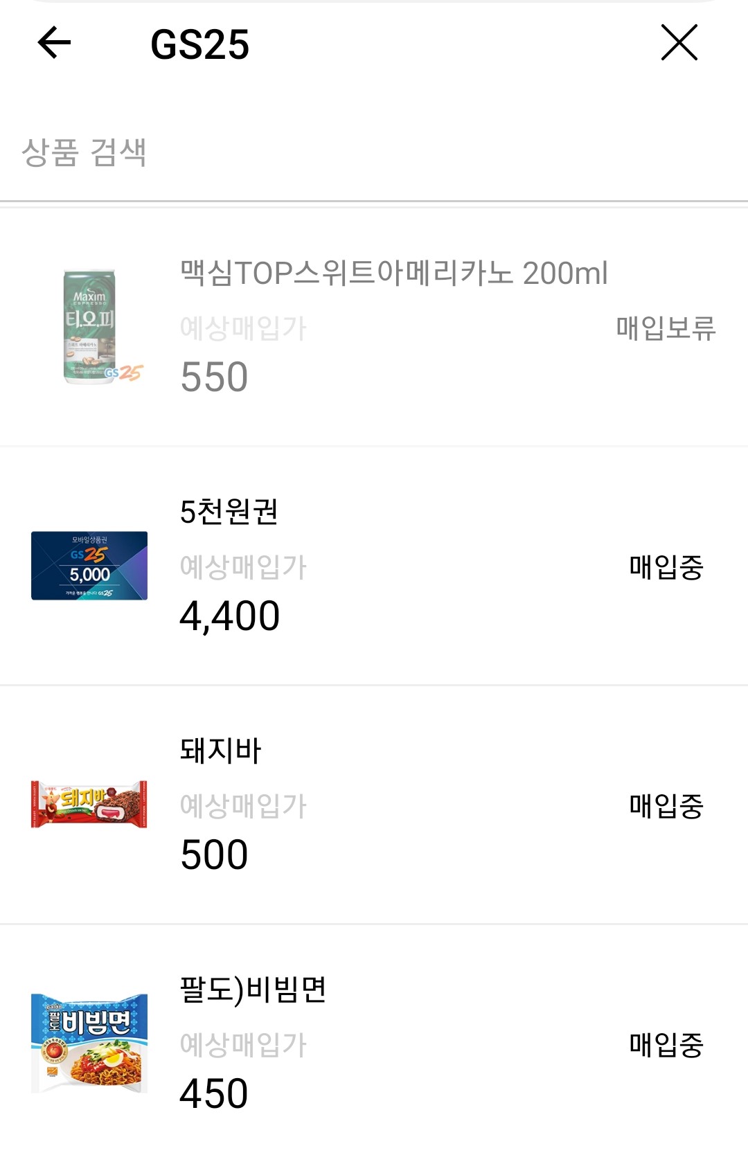 오늘 기준으로 GS 5,000원 금액권은 4,400원(12%할인율),