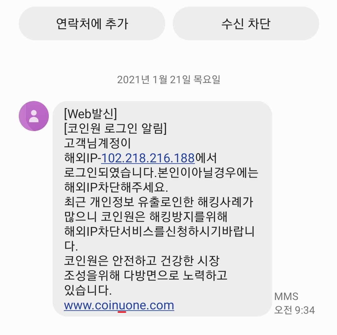 2~3개월에 한 번 씩 코인원 스미싱 문자가 온다.