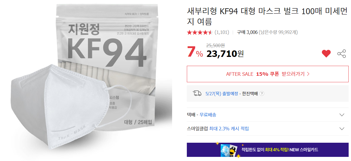 새부리형 마스크도 한번 구매해봤다. (KF94)