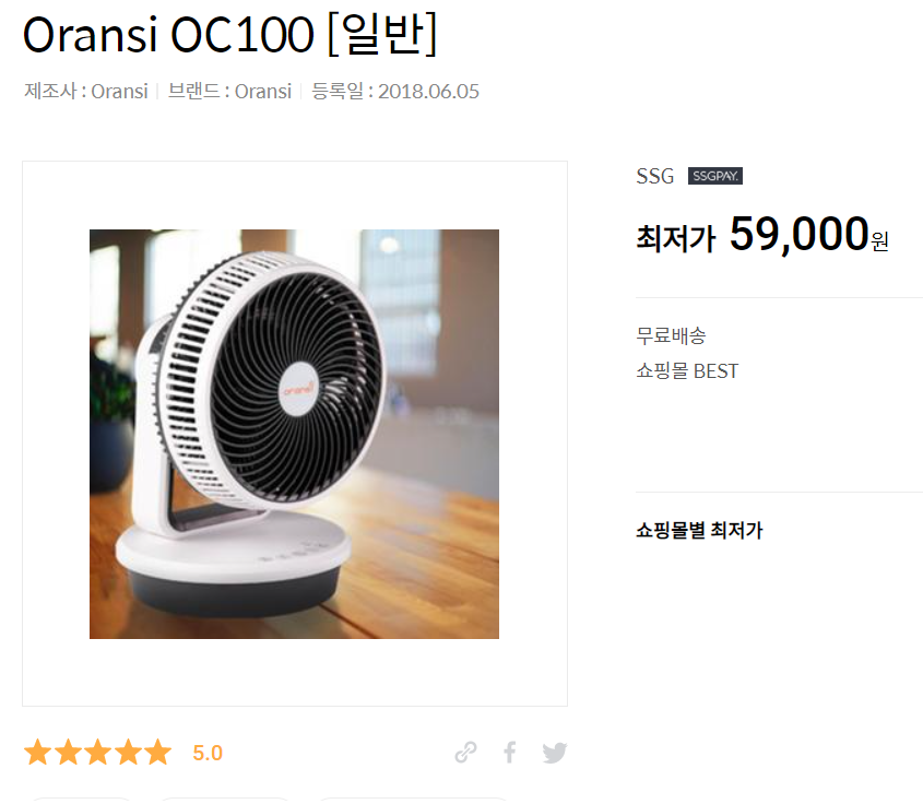 해당 제품 OC100은 원래 가격이 5만 원 내외인 제품이다.