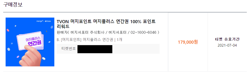약 한 달 전에 머지플러스 연간권을 179,000원에 사면