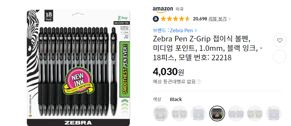 집에 검은색 볼펜을 쟁여둘 생각으로 샀다.