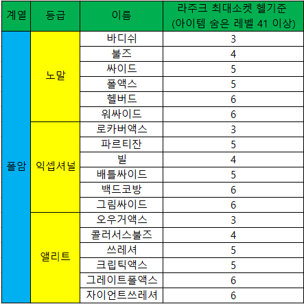 필요한 등급: 노말(수리불가) >>> 노말(고급) > 노말