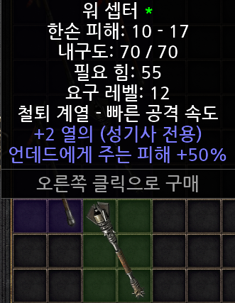 -> 팔라딘(=성기사) 전용 주무기 콜투암스(5솟), 인내(4솟) 재료