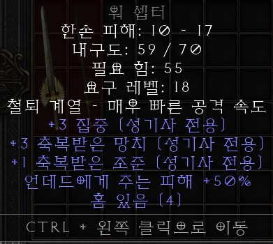옵션은 기본적으로 축복받은 망치(=해머) +3이 있어야 거래 가능