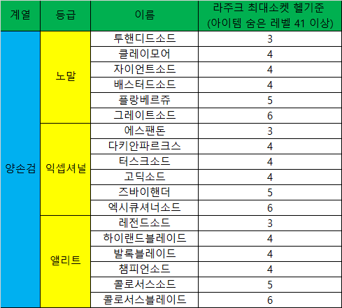 필요한 등급: 노말(에테리얼) > 노말(고급) > 노말