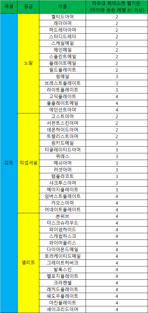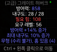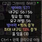 노말(고급)인 경우: 방어력 증가(최대+15%) 잘 붙은 경우에는 최소 2렘룬