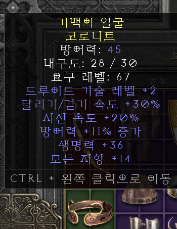 위에 건 옵션은 최상급이기는 한데 드루이드라서 2소켓이 뚫려있어야 팔림.