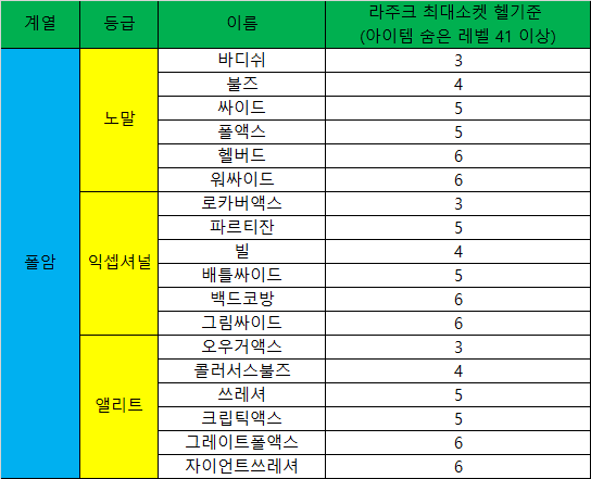 설명: 용병 룬 작업(=통찰)용 재료. 공속은 느리지만 파워가 좋다.