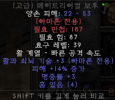 설명: 아마존 룬 무기 '신뢰(4소켓)' 제작을 위해 필요한 활이다.