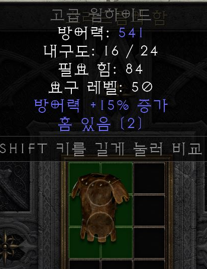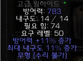 설명: 방어력 증가 (최대 +15%) 붙은 고급 웜하이드는