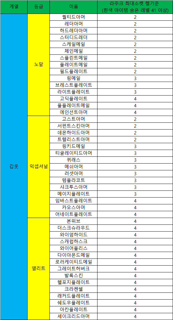 *참고: 용병용 갑옷은 인내>>>>>>>>>>>>>>>스톤>배신>연기 순으로 좋음.