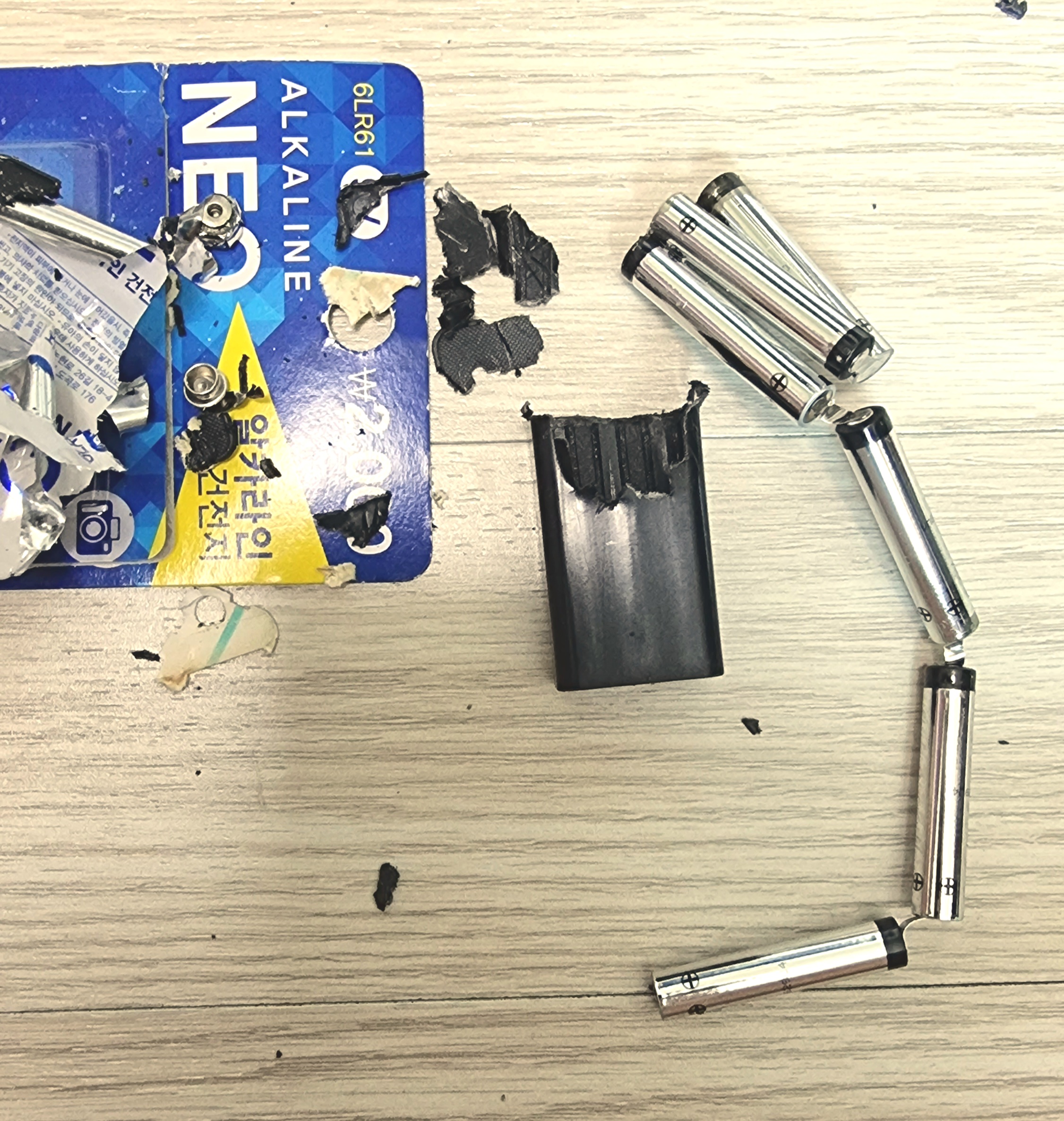 AAAA건전지 6개를 빼보니 6개가 건전지 지네(?)처럼 이어져있었다.
