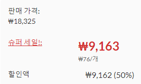 네이버 기준 1통 60정에 약 29,000원 이다.