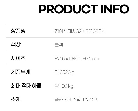 사이즈는 가로 65cm, 세로 40cm, 높이 76cm다.