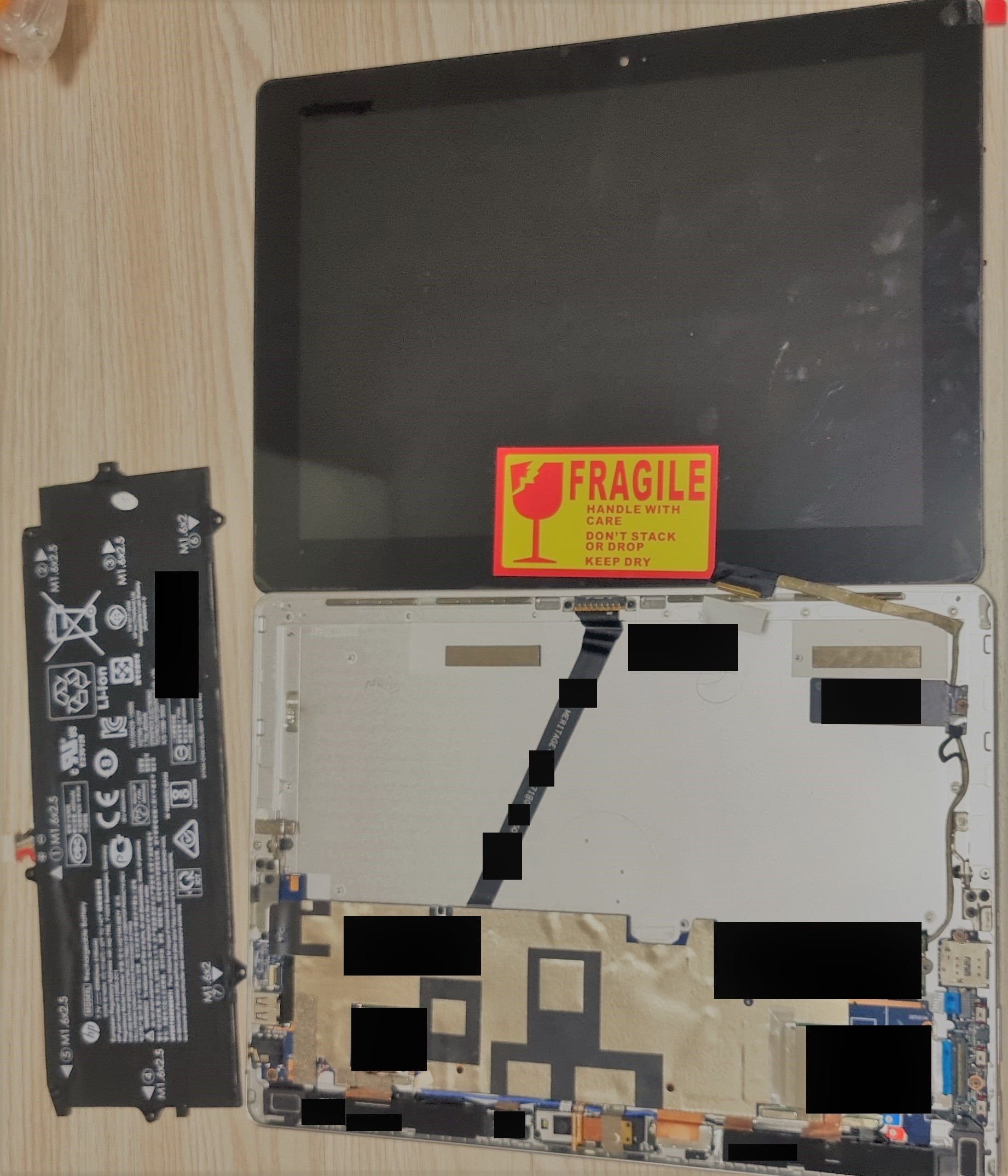 교체 절차는 본체 뚜껑 열기 -> 배터리 분리 -> 고장난 터치스크린 분리