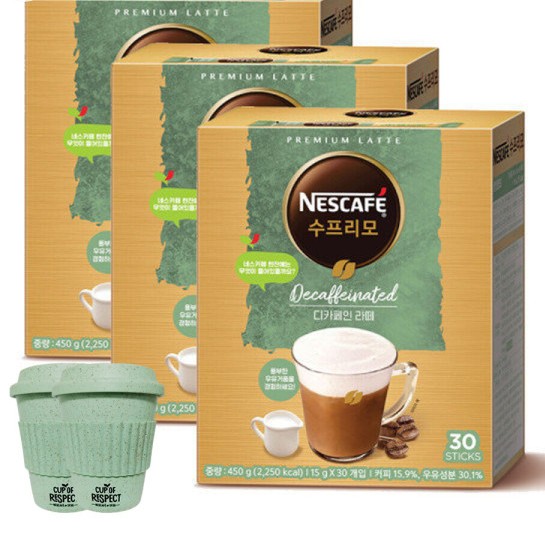 네스카페 수프리모 디카페인 라떼 30T*3통+머그컵 2개