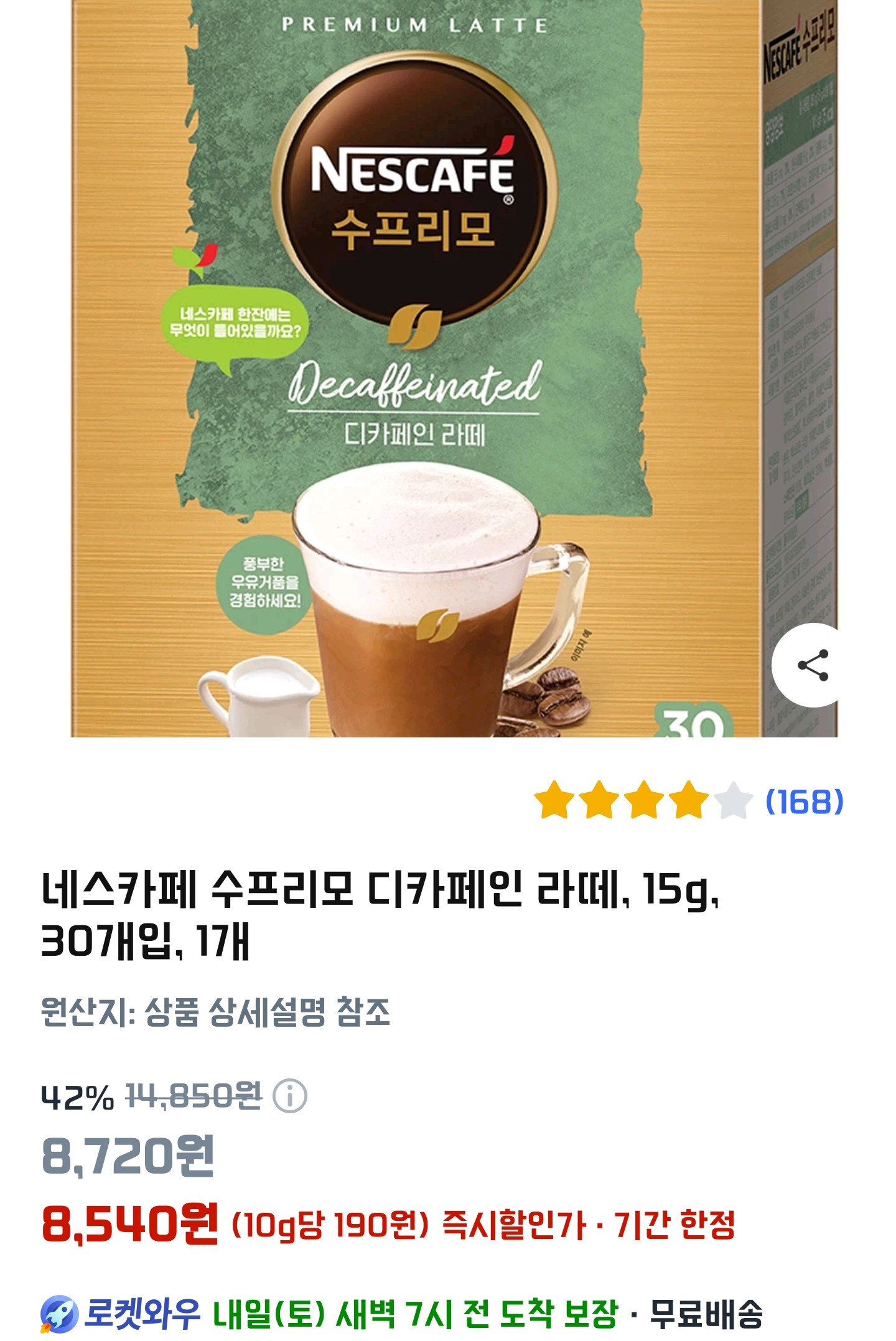 네스카페 수프리모 디카페인 라떼 30T * 3통 (+쇼핑카트)