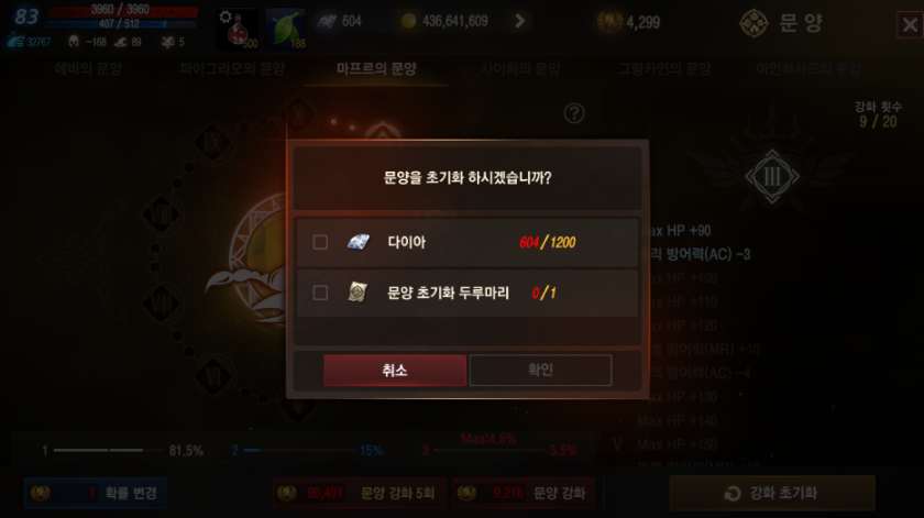 (가끔 NC에서 이벤트로 문양초기화권 뿌릴 때가 있는데 다이아/명코 낭비하지 말고 그 때를 기다리자...)
