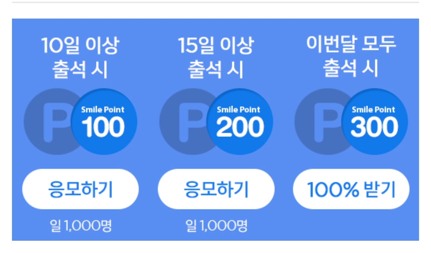 다만 1달 개근하면 300포인트 주는 건 무조건 받아두는 게 좋다.