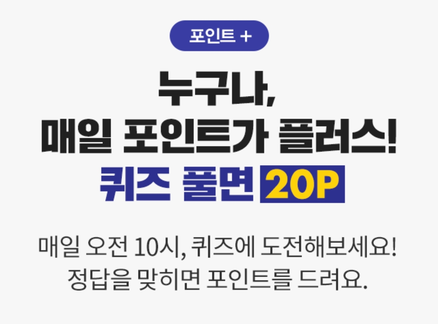 퀴즈를 풀면 20포인트를 얻을 수 있다.