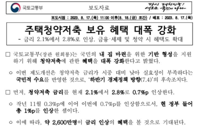 일반 주택청약저축의 경우는 2.1% -> 2.8%로
