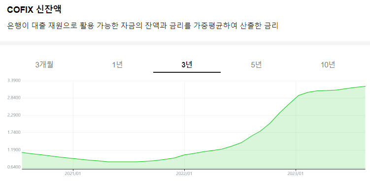 3.21%로 우리은행에서 제시한 코픽스 금리와 동일하다.